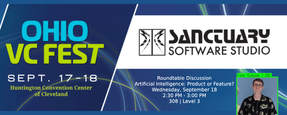 Join Cole Sutyak and Michael Terry of Sanctuary Software Studio, Inc. for a roundtable discussion on AI: Feature or Product? at Ohio VC Fest.
